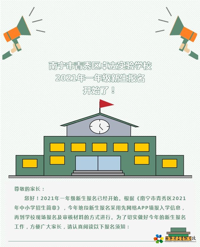 南宁市青秀区卓立实验学校2021年一年级新生报名开始了!