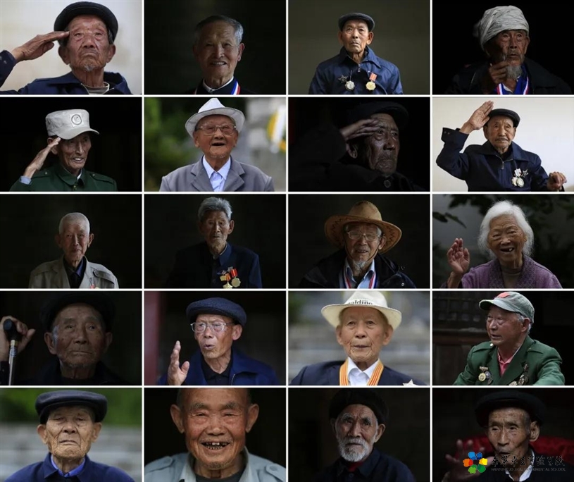 20位中国远征军滇西抗战老兵的拼版图片。新华社发(田卫涛 摄)