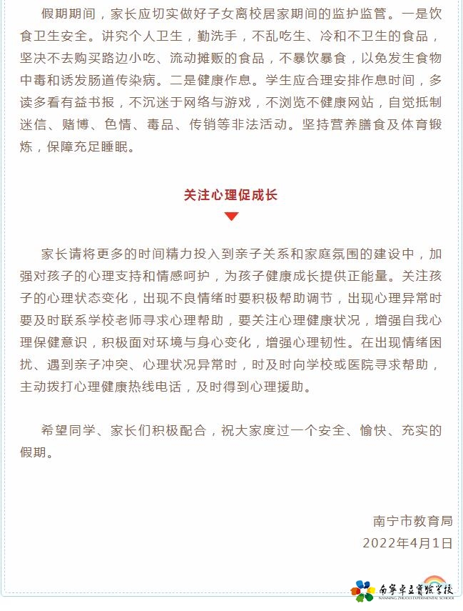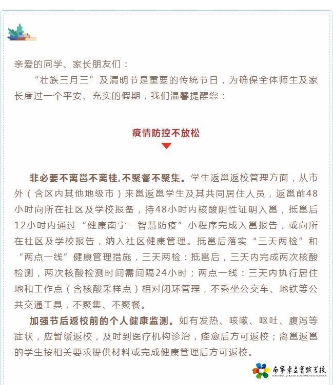 一封信 | 南宁市教育局关于“壮族三月三”及清明节致全体学生和家长的一封信