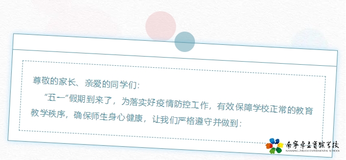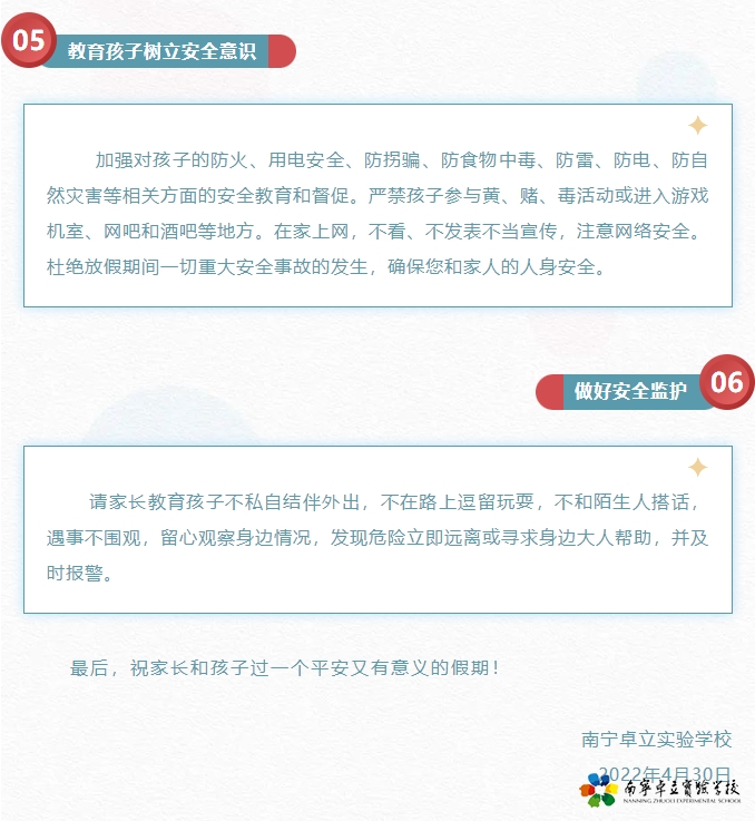 南宁市青秀区卓立实验学校2022年“五一”假期安全教育致家长、同学们的一封信