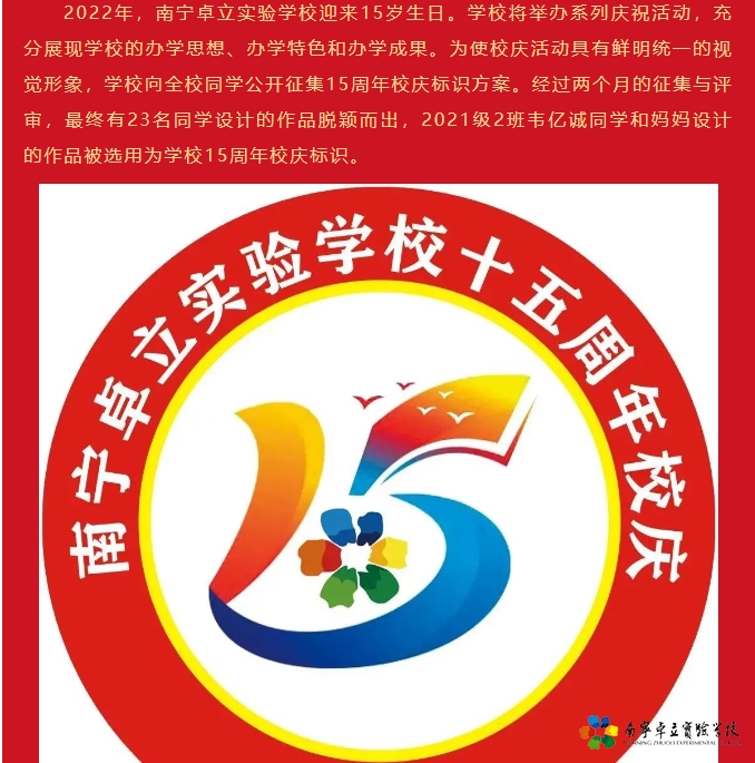 【奋进十五年】南宁卓立实验学校15周年校庆标识评选结果揭晓