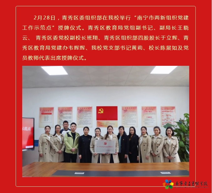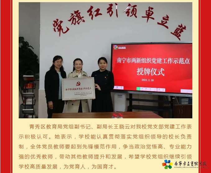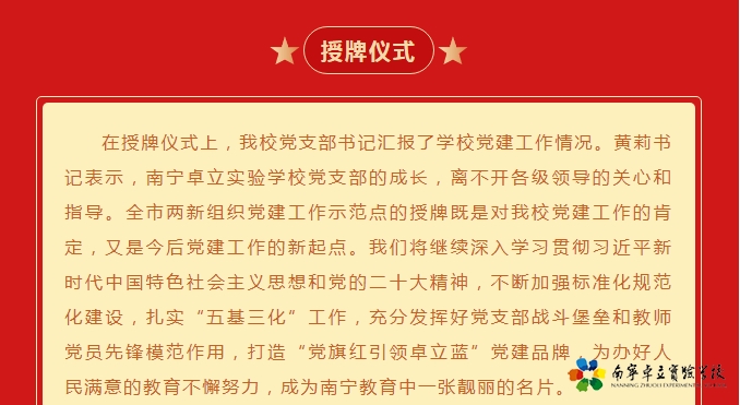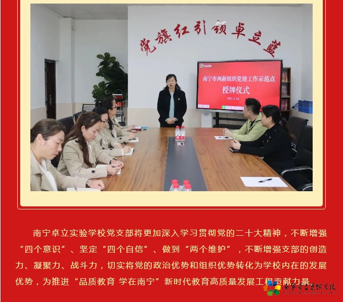 榜样传承精神 使命引领担当——南宁卓立实验学校党支部“南宁市两新组织党建工作示范点”授牌仪式举行