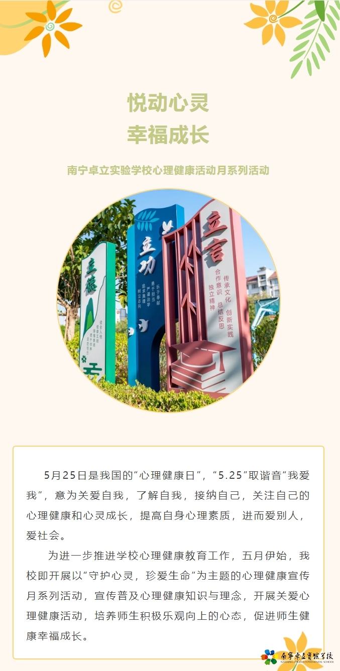 悦动心灵 幸福成长——南宁卓立实验学校心理健康活动月系列活动
